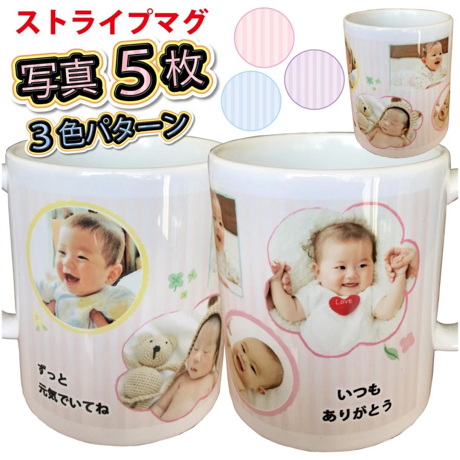 ストライプ写真5枚 メッセージ入 オリジナル マグカップ 家族 孫 ペット 写真&名前入 父の日 母の日 敬老の日 出産祝 誕生日 クリスマス 結婚祝 プレゼント :or-mug-69:森山印刷所 - 通販 - Yahoo!ショッピング